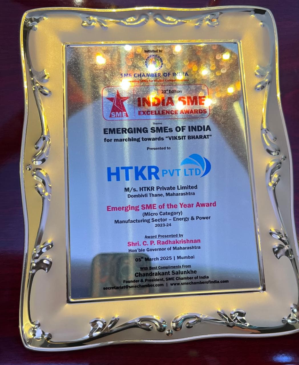 We thank SME Chamber of India for recognizing emerging companies like HTKR Private Limited